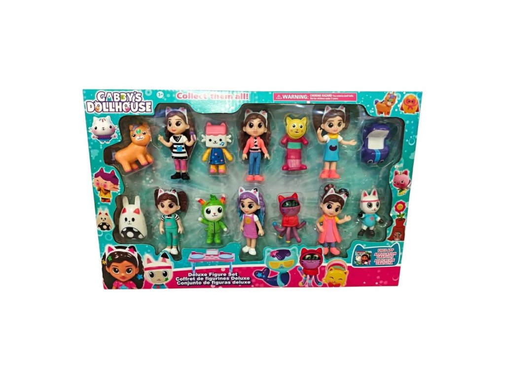 V balení nájdete Gábi v rôznych outfitoch a množstvo jej zvieracích kamarátov – mačičky, jednorožce aj ďalšie farebné postavičky.