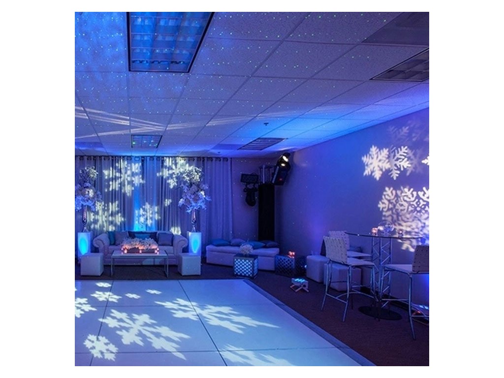 - Efekt snehových vločiek: Laser premieta snehové vločky, ktoré sa pohybujú v krúživom pohybe, čo vytvára dynamický a atraktívny efekt.