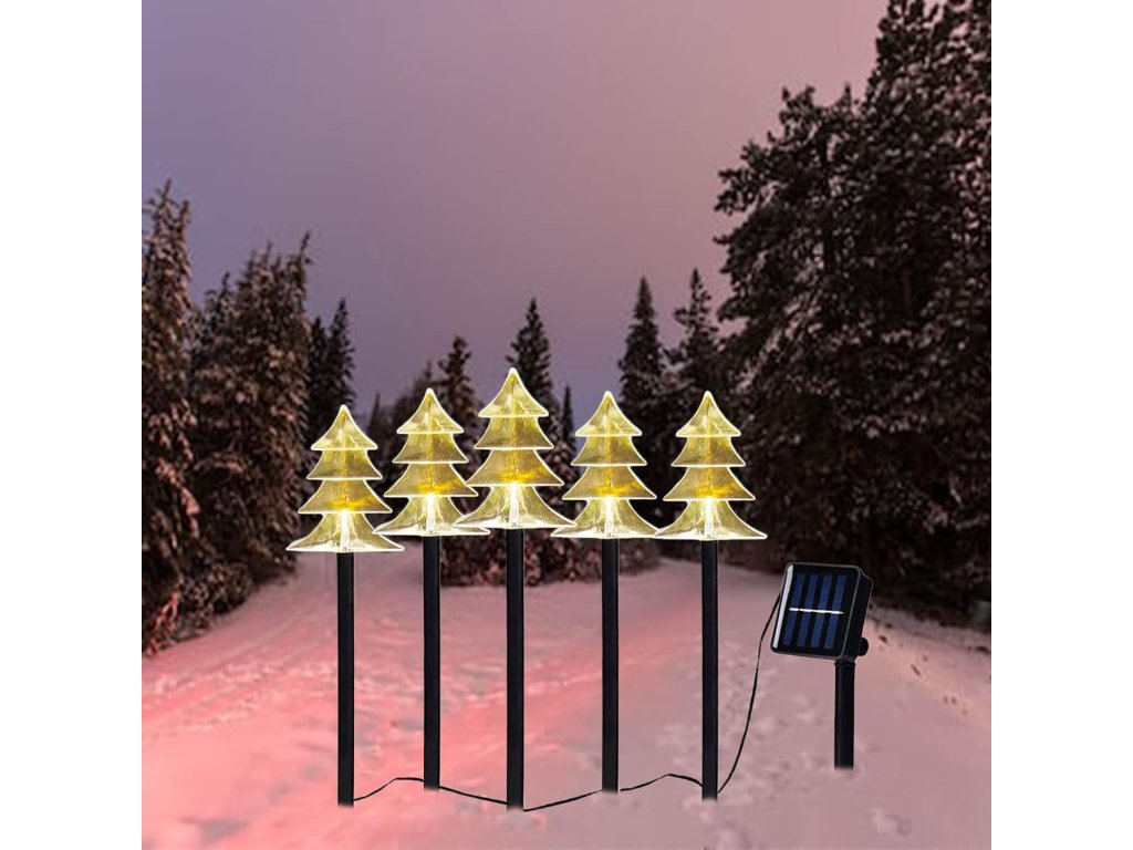 Vianočný zápich do záhrady - Stromčeky 5 ks (solárny panel)