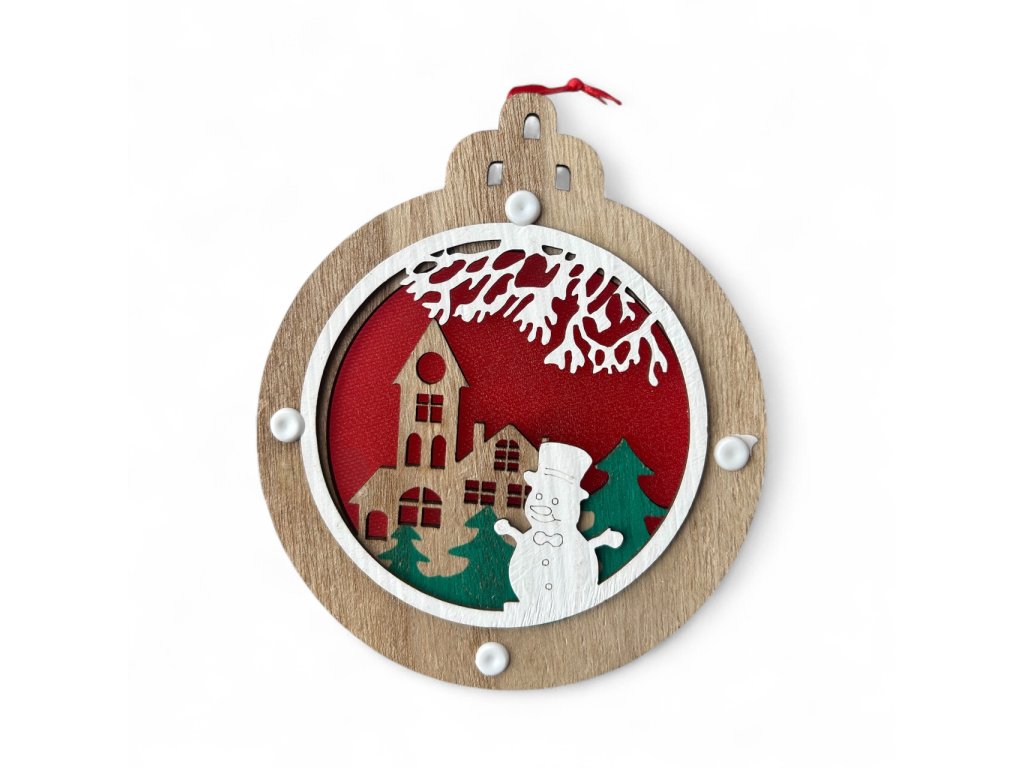 Vianočná drevená ozdoba s LED osvetlením - Guľa (snehuliak)