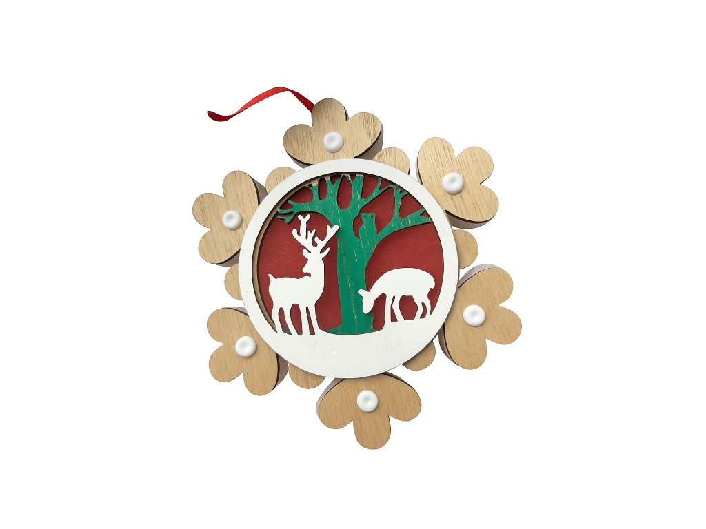 Vianočná drevená ozdoba s LED osvetlením - Vločka (sobi)