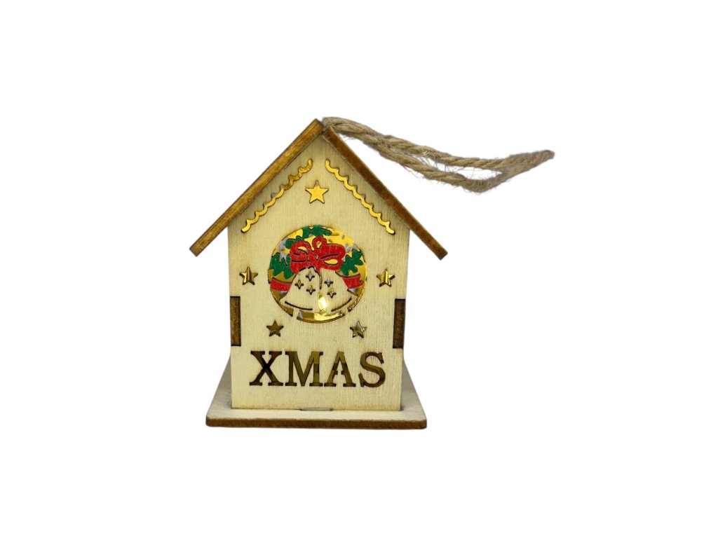 Vianočná LED závesná dekorácia na zavesenie - Domček XMAS (5x5x6 cm)