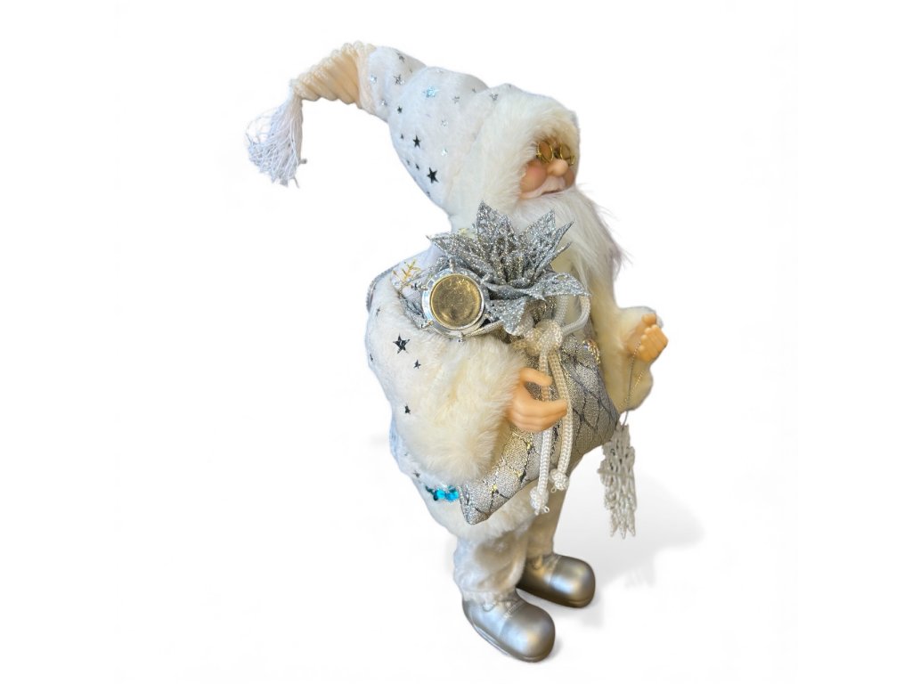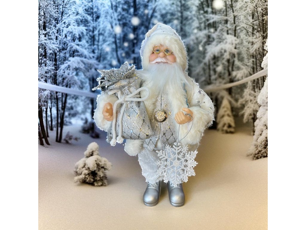 Vianoční dekorácie Santa Claus - Bielo-strieborný s vločkou (30 cm)