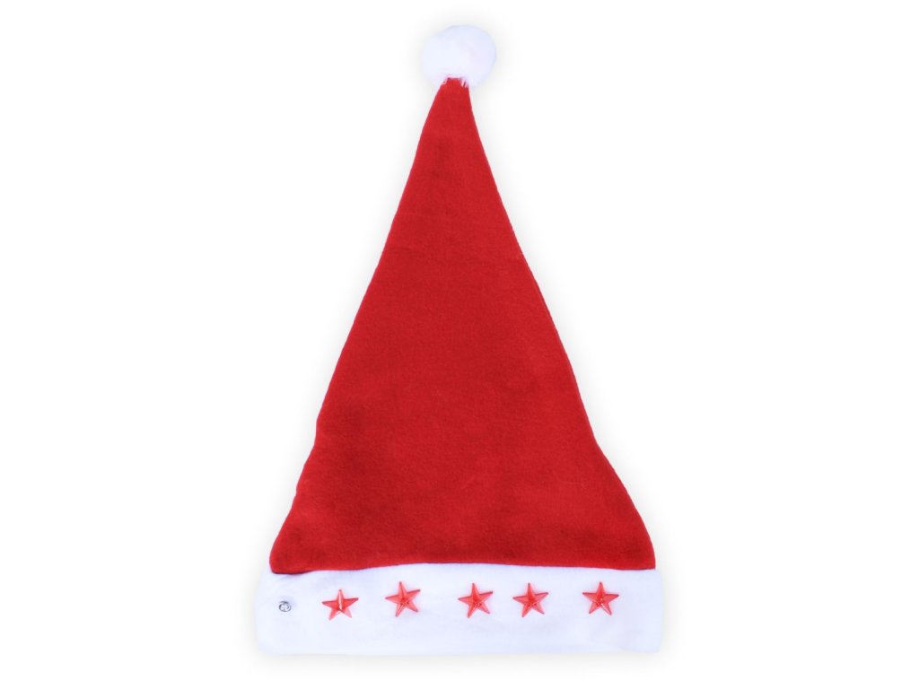 Krásna vianočná čiapka s hviezdičkami, ktoré blikajú! Čiapka je vyrobená z filcu a obsahuje 2 ks batérií typu LR44. Stlačením tlačidla na kraji čiapky začnú hviezdičky na čiapku blikať. Perfektný doplnok na vianočný večierok!