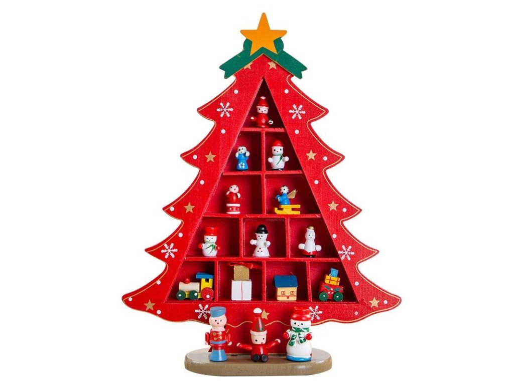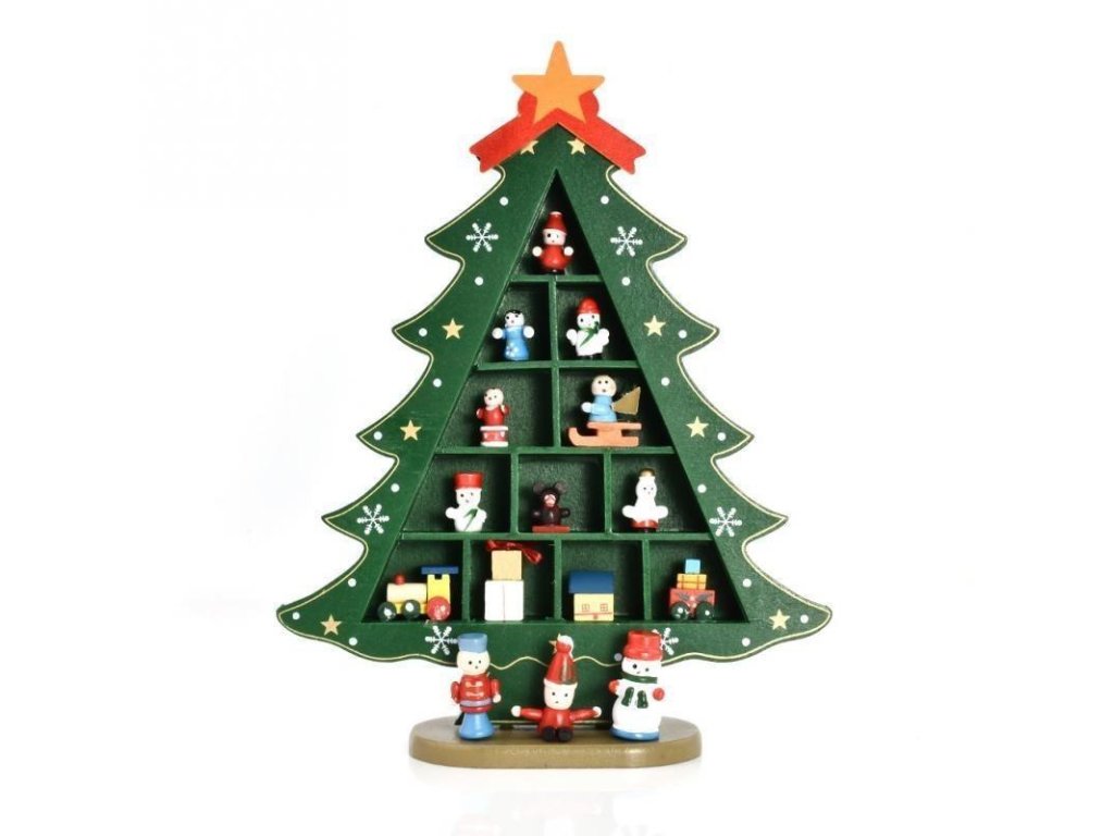 Drevený vianočný stromček s figúrkami (29 cm)